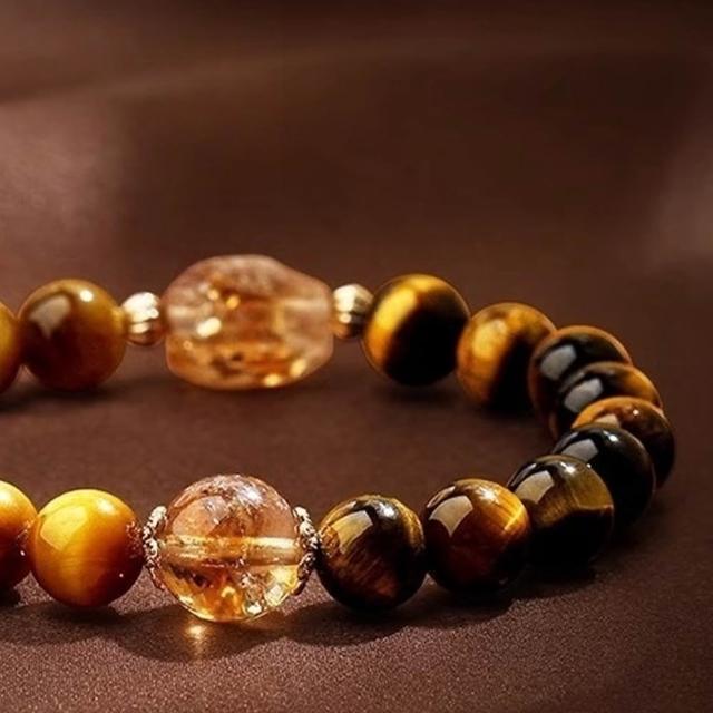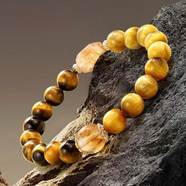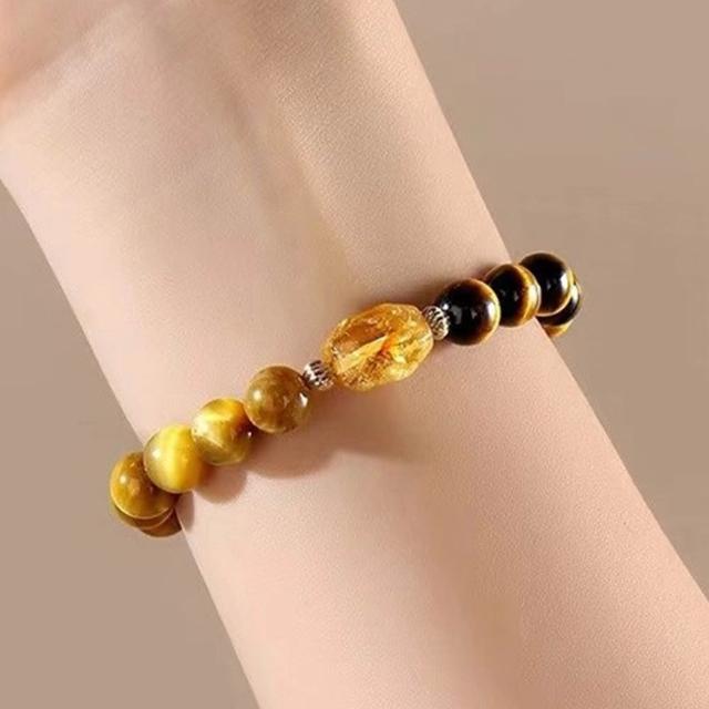LEEHER黃水晶手鍊/串珠/招財手鍊/防小人/能量手環/水晶串珠/配件/配飾/開運手串/水晶手串/黃虎眼/黃水晶/平安手串