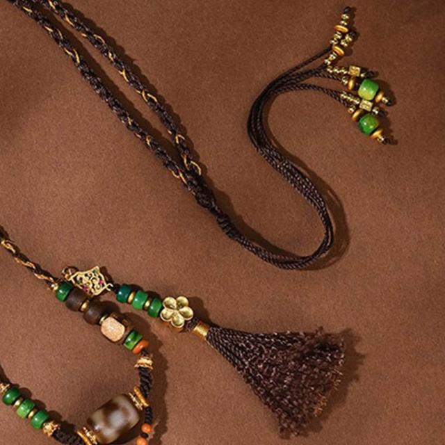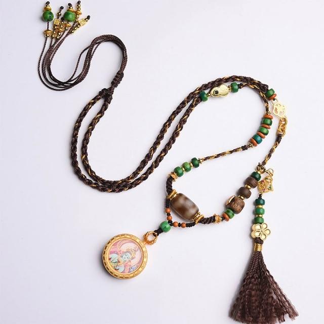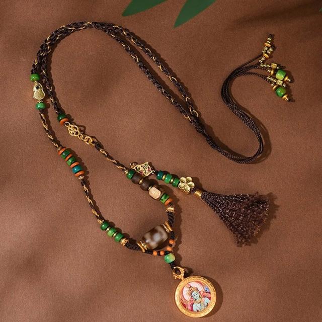 LEEHER復古項鍊/天珠/守護神/護身符/保平安/小眾設計/配件/文玩/編繩/項鍊/男女通用/手工編織/唐卡/吊墜/飾品
