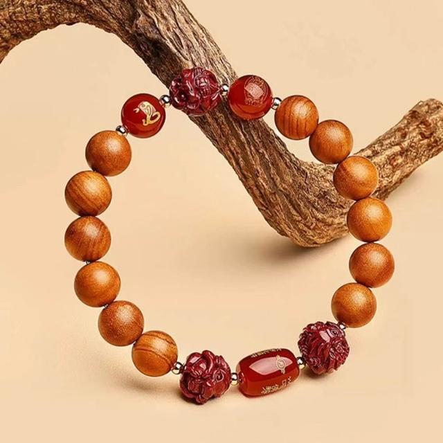 LEEHER桃木手串/普賢菩薩/蛇年/本命年/三合六合/女手鍊/避邪手鍊/手鍊/手串/佛珠手鍊/串珠手鍊/硃砂手鍊/生日禮物