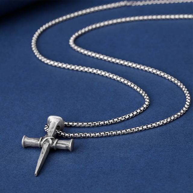 LEEHER項鍊男/釘子十字架/朋克/吊墜項鍊/毛衣鏈/十字架吊墜/飾品