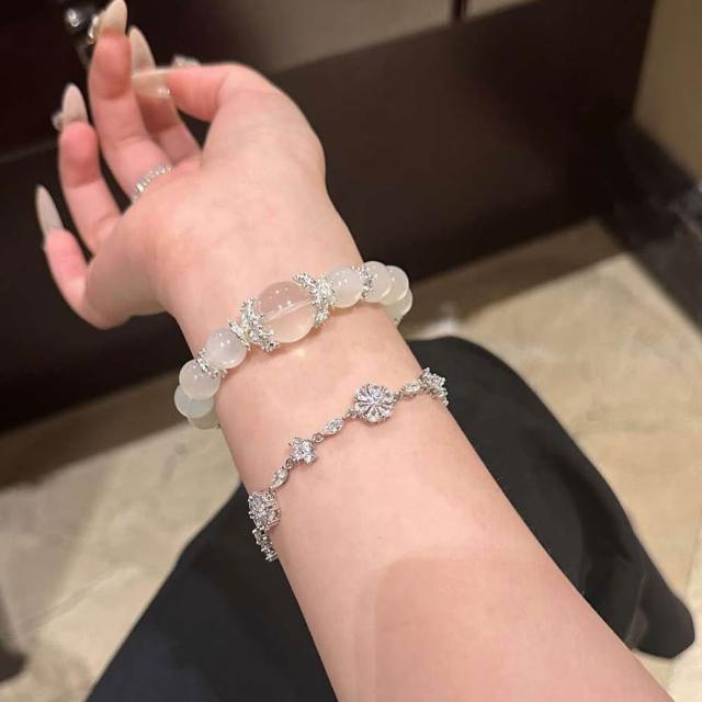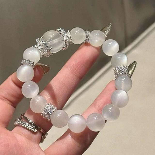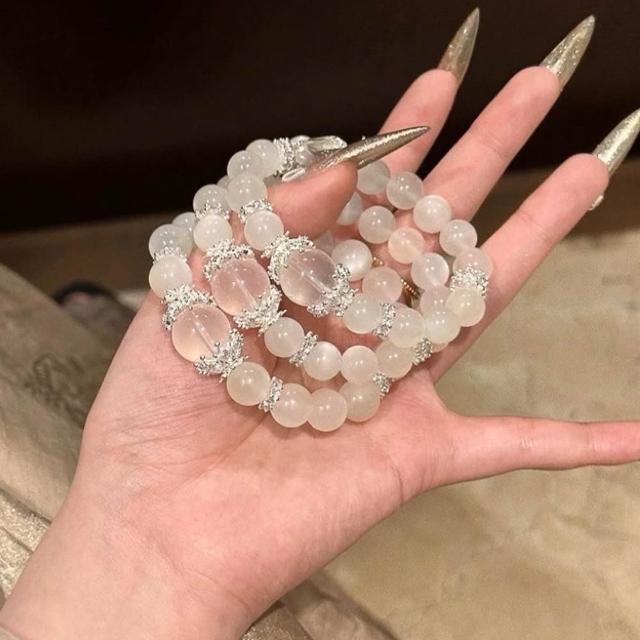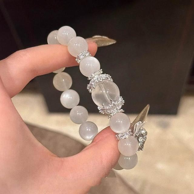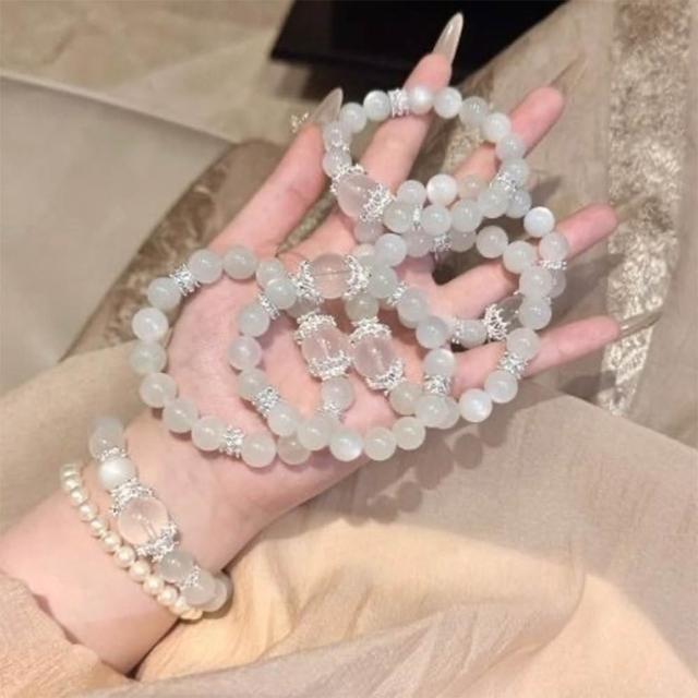 LEEHER白月光串珠手鍊/白水晶飾品/女生配飾/天然水晶/月光石手串/圓珠手鍊