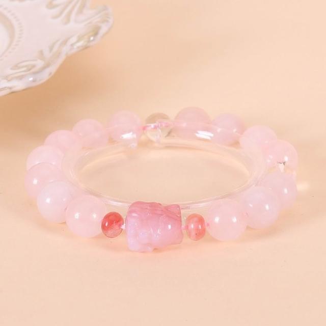 LEEHER天然/白水晶/飾品/水晶手飾/粉水晶狐狸手鍊/九尾狐串珠手串/圓珠手鍊