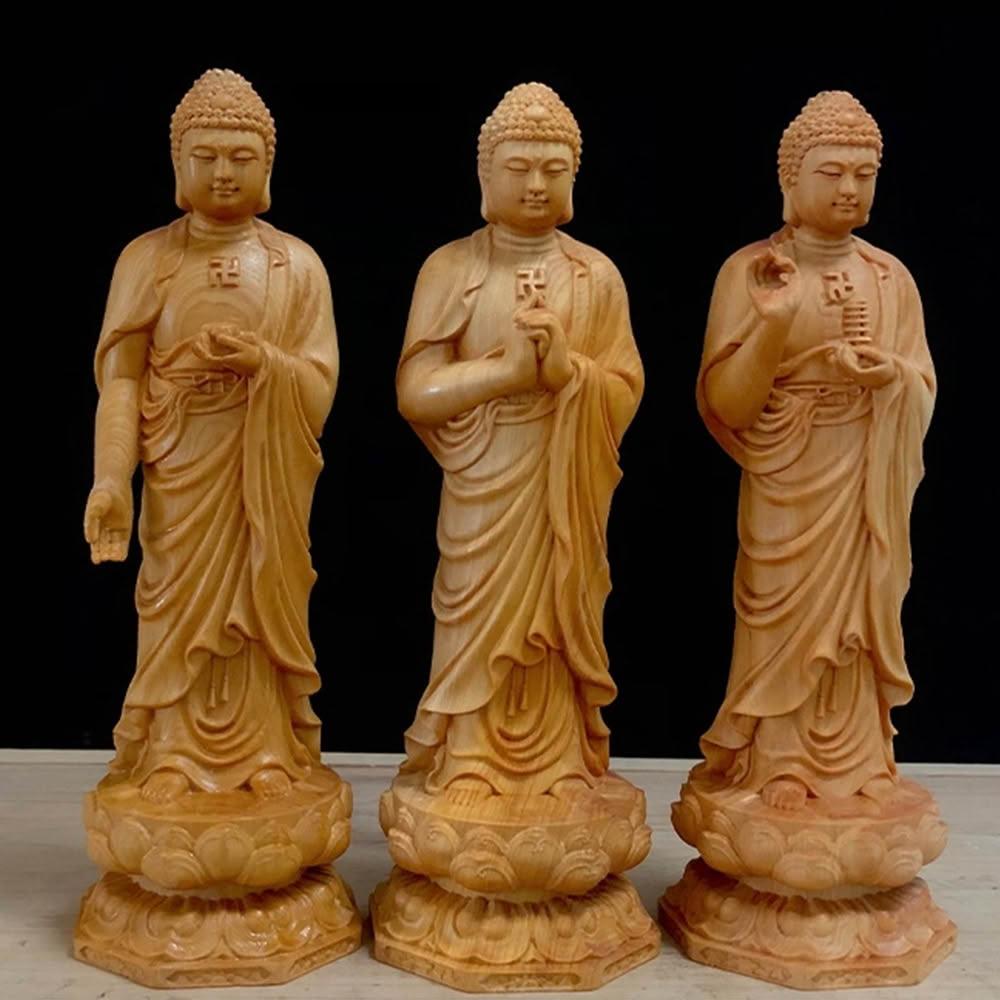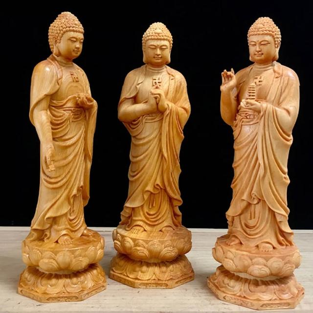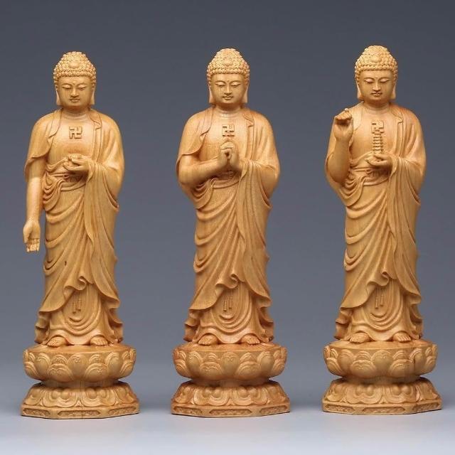 LEEHER阿彌陀佛/木雕佛像/佛像擺件/西方三聖/供奉禮佛/崖柏/雕刻/木雕