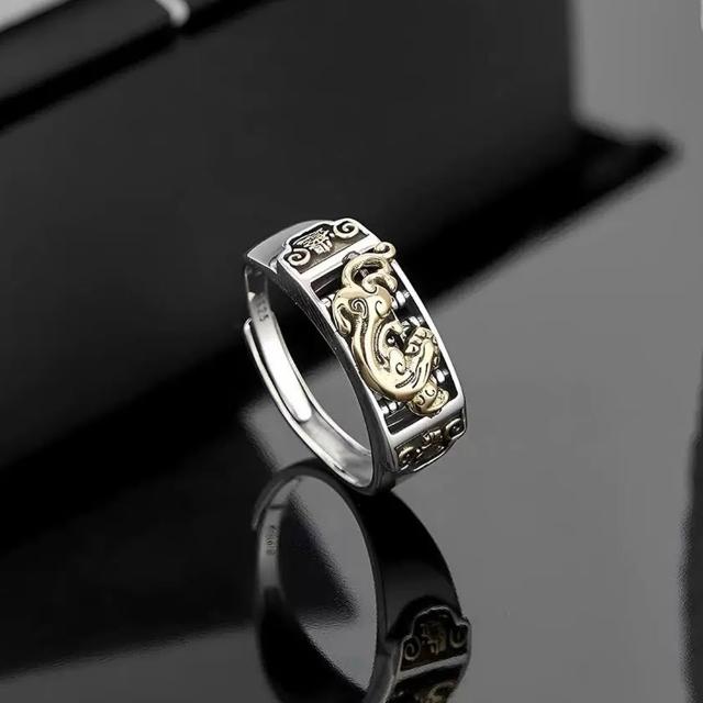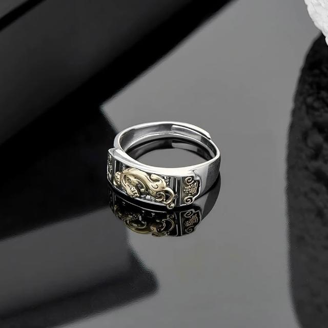 LEEHER925銀飾/男款戒指/貔貅造型/轉運飾品/開口設計/鏤雕造型/復古風戒指/低敏材質/型男飾品