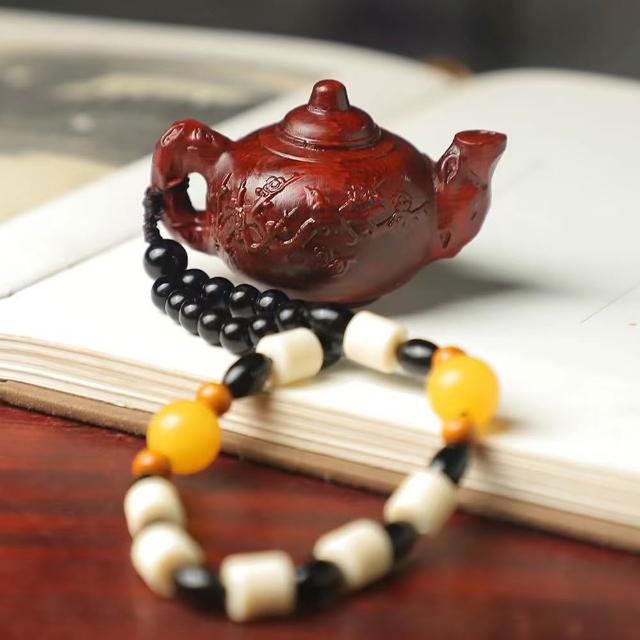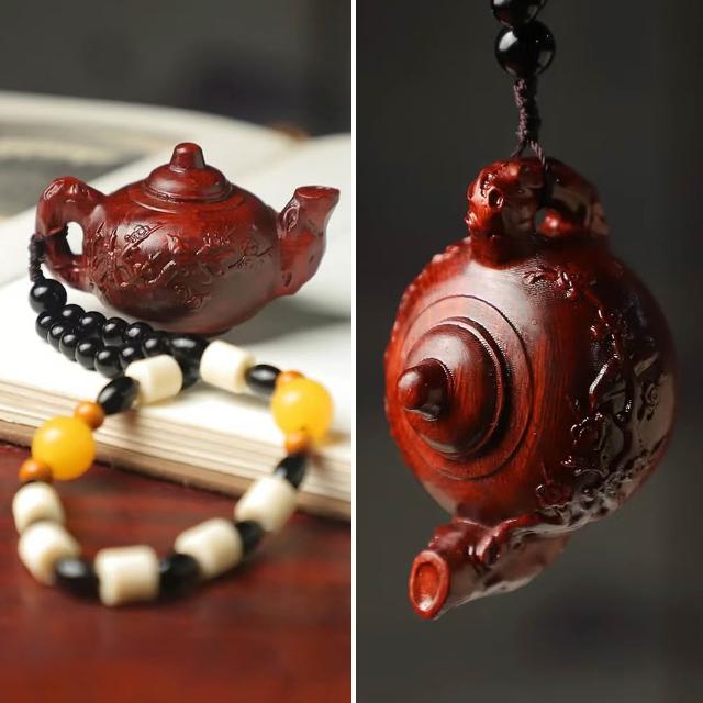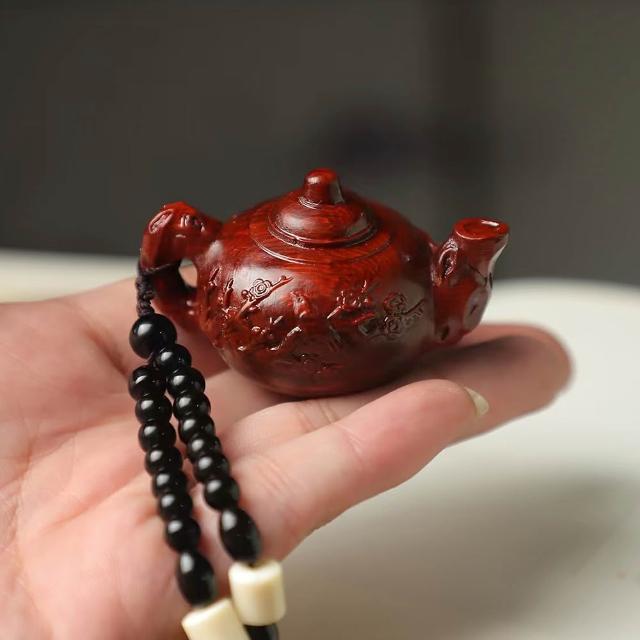 LEEHER木雕小葉紫檀手把件/鑰匙掛飾/茶壺吊墜/文玩飾品/把把壺/收藏/生日禮物/送男友/創意小物/精緻工藝/質感/送禮