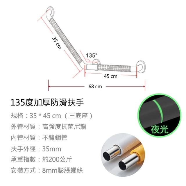ABS白色夜光扶手-135度135度防滑安全扶手(浴室扶手 防滑扶手 廁所扶手 樓梯扶手 殘障扶手 無障礙扶手)