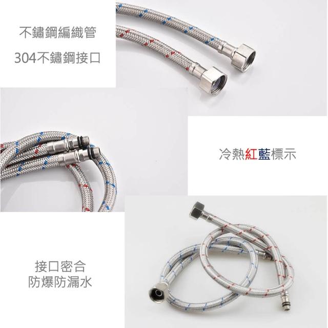 不鏽鋼編織尖頭軟管(80cm)冷熱水龍頭.進水管(冷熱標示.四分.4分.金屬.編織管.軟管.冷熱進水)