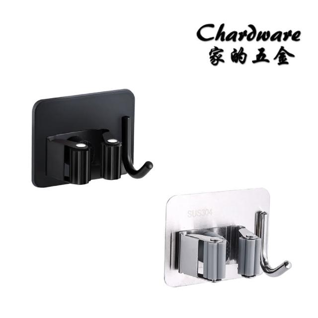 3M黏膠 免打孔 不鏽鋼拖把架帶鉤-2入組(霧黑.毛絲)(拖把夾.掃把.抹布.掛勾.掛鉤.無痕免釘.浴室.拖把掛鉤.掃把掛架.收納)