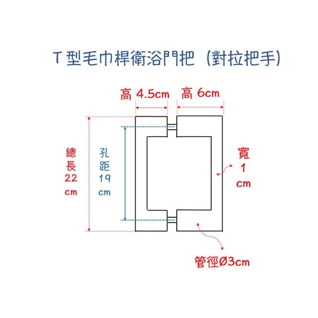 T型毛巾桿衛浴門把 淋浴拉門專用把手 單桿(304不銹鋼.衛浴把手.玻璃.毛巾桿.乾濕分離.白鐵門把.玻璃門.把手)