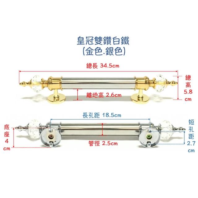 皇冠雙鑽白鐵 門把 八分把手(345mm)(大門把.落地門把手.鋁門把手.紗門把手.拉手.把手.DIY.居家裝潢)