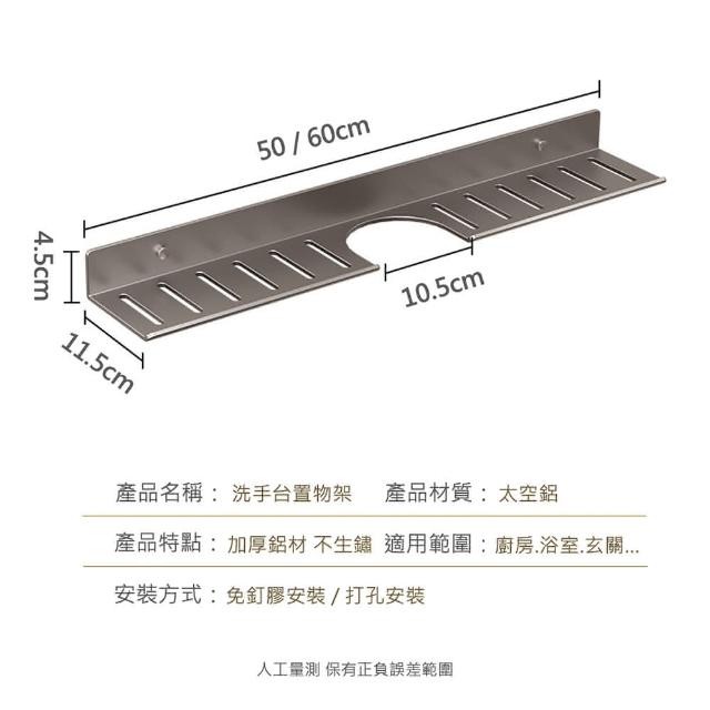 免打孔 / 打孔雙用 洗手台置物架(亮銀.槍灰)60cm(鏡前架.洗漱台.免釘.衛生間.廁所.廚房.收納.衛浴)