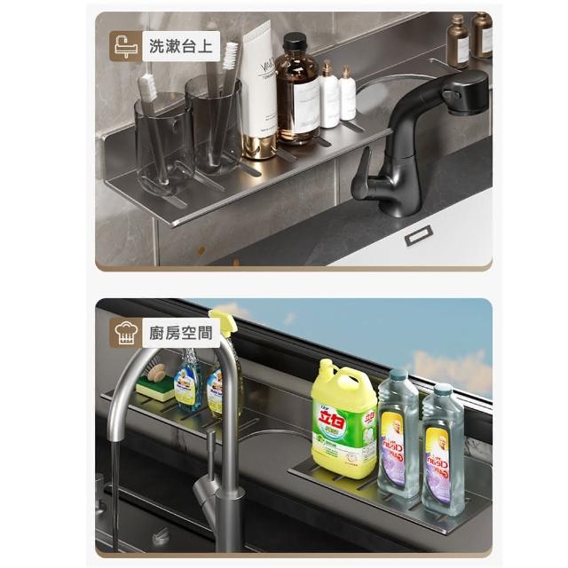 免打孔 / 打孔雙用 洗手台置物架(亮銀.槍灰)60cm(鏡前架.洗漱台.免釘.衛生間.廁所.廚房.收納.衛浴)