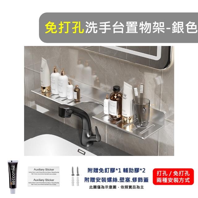 免打孔 / 打孔雙用 洗手台置物架(亮銀.槍灰)60cm(鏡前架.洗漱台.免釘.衛生間.廁所.廚房.收納.衛浴)