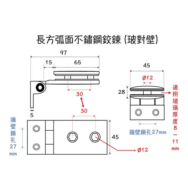 501 長方弧面不鏽鋼鉸鏈.淋浴拉門鉸鏈(亮光.毛絲.霧黑)(後鈕 自由鉸鍊 無動力 玻對壁 玻對玻 衛浴五金 玻璃門 鉸鍊)