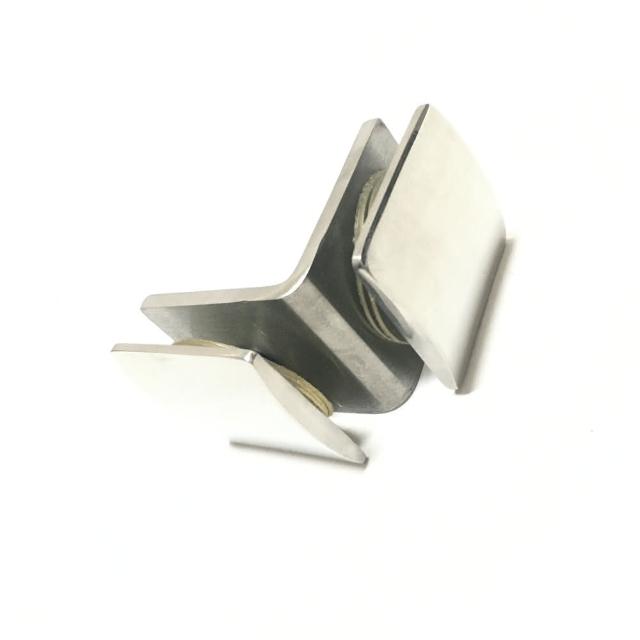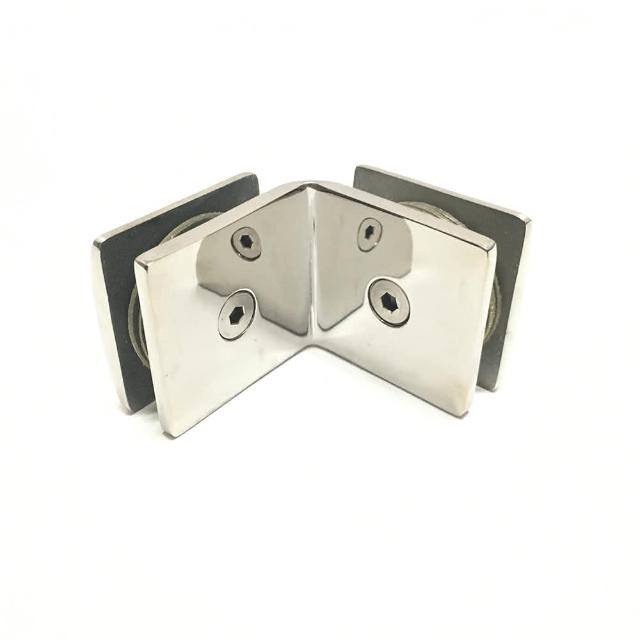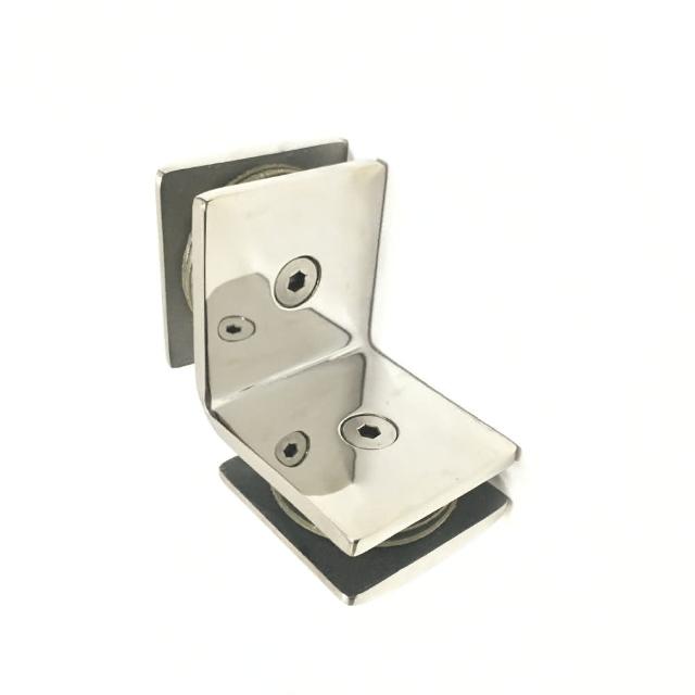 弧面不鏽鋼玻璃固定夾(鏡面)(90度雙面 玻對玻 衛浴配件 玻璃五金 玻璃門 固定片 玻璃夾 固定座 淋浴門)