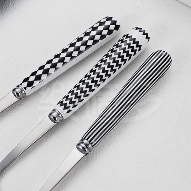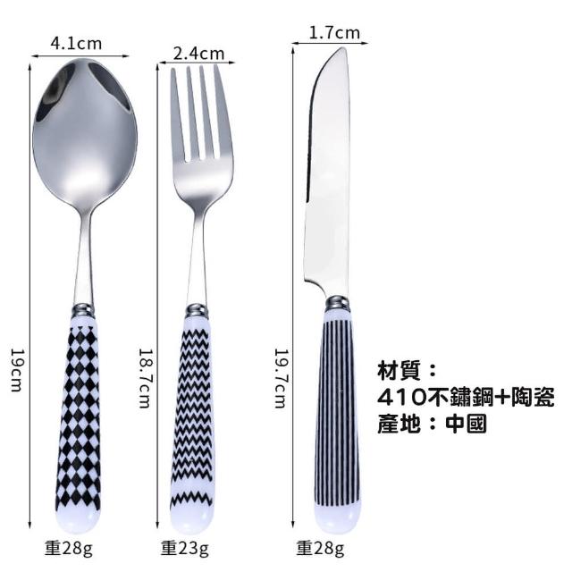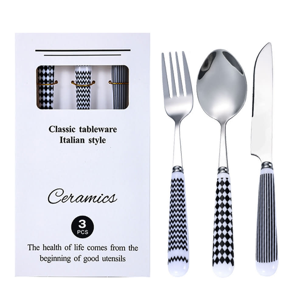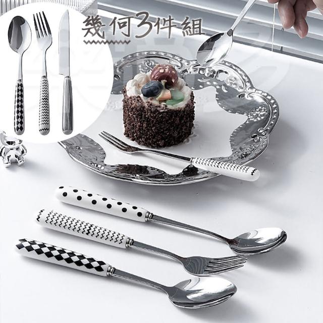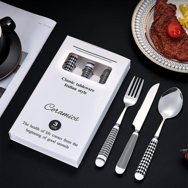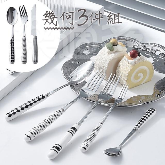 儀式感幾何陶瓷不鏽鋼餐具三件組 MO6021(餐具 叉子 西餐餐具 牛排刀 湯匙 餐具組)