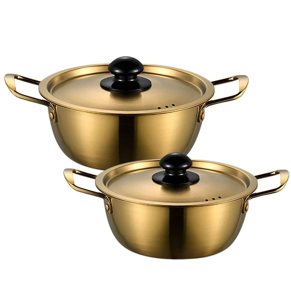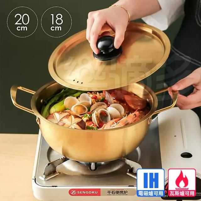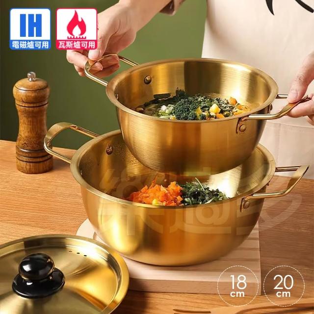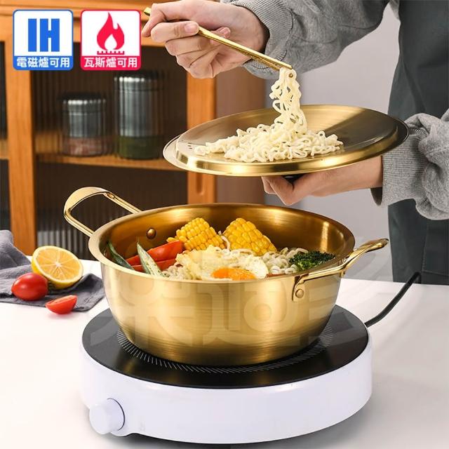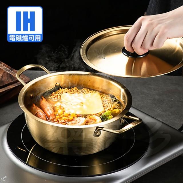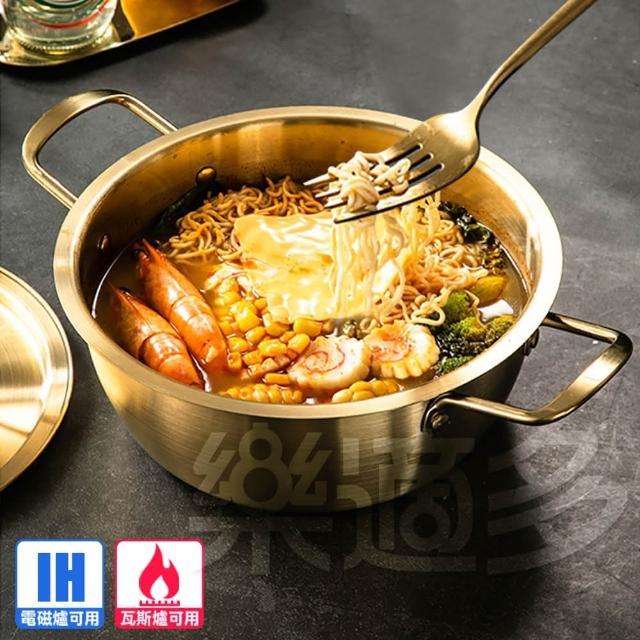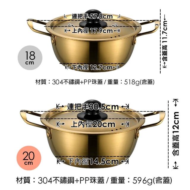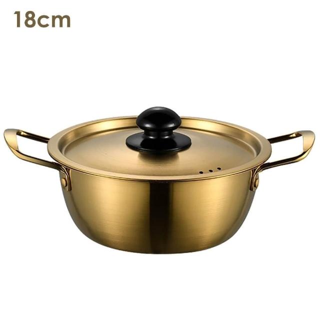 18cm 韓式金色加厚雙耳304不鏽鋼泡麵鍋(泡麵鍋 湯鍋 個人鍋 露營炊具 鍋具)