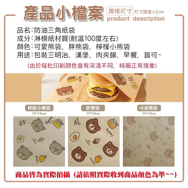 2square shop 貳次方sweet bear 三明治袋 100入 L型防油紙袋 三角袋 吐司紙袋 貝果袋 漢堡袋 早餐紙袋 三明治包裝紙 紙袋