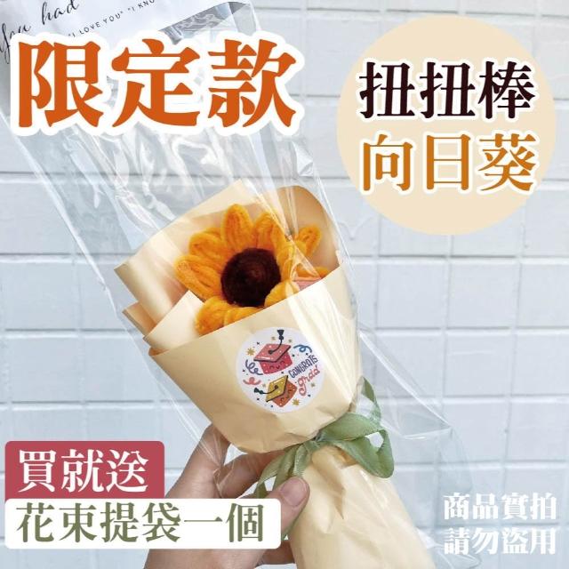 扭扭棒 編織向日葵花束|毛線 手作花 畢業 / 送禮用 附手提包裝袋