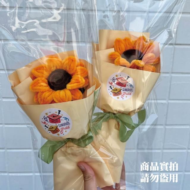 扭扭棒 編織向日葵花束|毛線 手作花 畢業 / 送禮用 附手提包裝袋