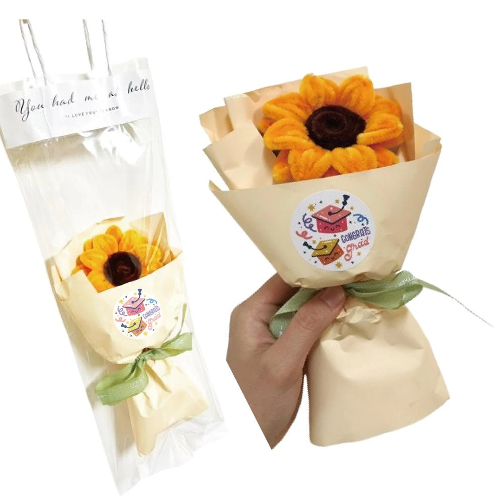 扭扭棒 編織向日葵花束|毛線 手作花 畢業 / 送禮用 附手提包裝袋