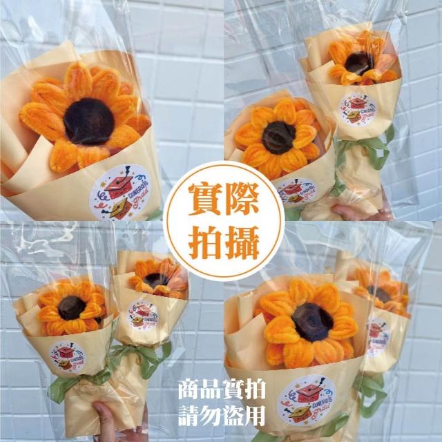 扭扭棒 編織向日葵花束|毛線 手作花 畢業 / 送禮用 附手提包裝袋