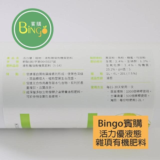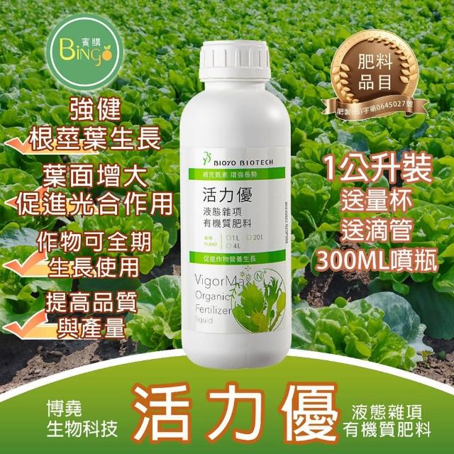 Bingo賓購 活力優 液態有機質 1L(草莓番茄肥料 鹿角蕨肥料 促進蛋白質和葉綠素形成)