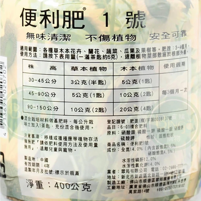 Bingo賓購 便利肥長效控釋肥400g(養葉肥 植物通用 懶人肥料 多肉 鹿角蕨)