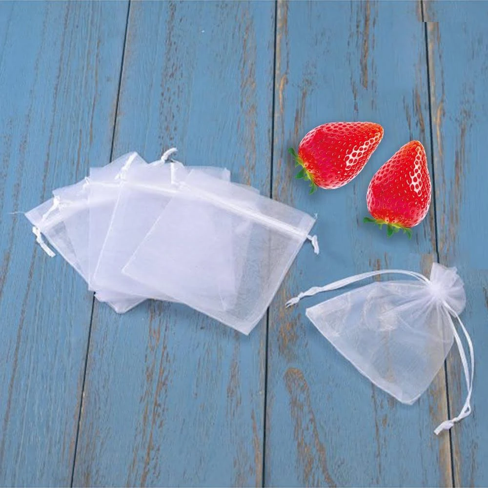 賓購 100入 8x10cm 雙拉繩水果網袋 小草莓適用 草莓種植 束口紗網袋 水果套袋 雪紗網 防果實蠅 紗網袋