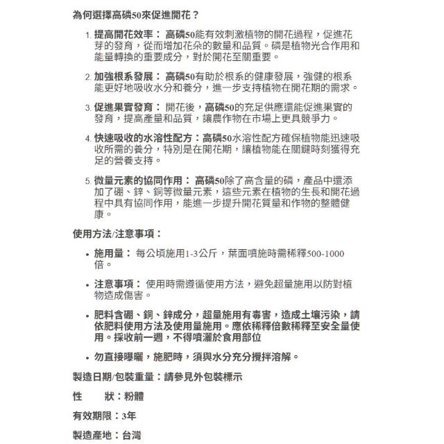 賓購 高磷50 催花肥 開花肥 氮8-磷50-鉀8 優良高磷肥 催花效果快 好吸收 無氯化物硫化物 微量元素 花期養份
