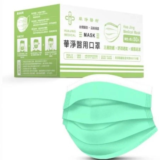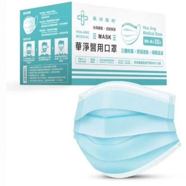 華淨醫材成人醫療口罩50入 醫材字號 (進出醫療院所、預防飛沫傳染)