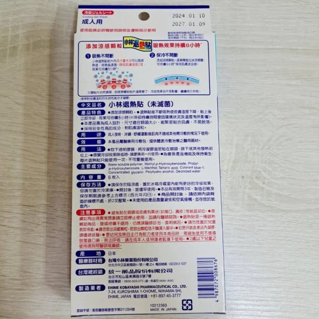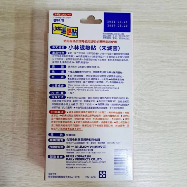 小林製藥小林製藥 退熱貼 6入/盒 發燒 降溫 散熱 無須冷藏 嬰兒 兒童 成人 退熱貼