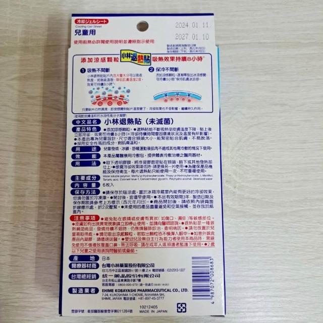 小林製藥小林製藥 退熱貼 6入/盒 發燒 降溫 散熱 無須冷藏 嬰兒 兒童 成人 退熱貼