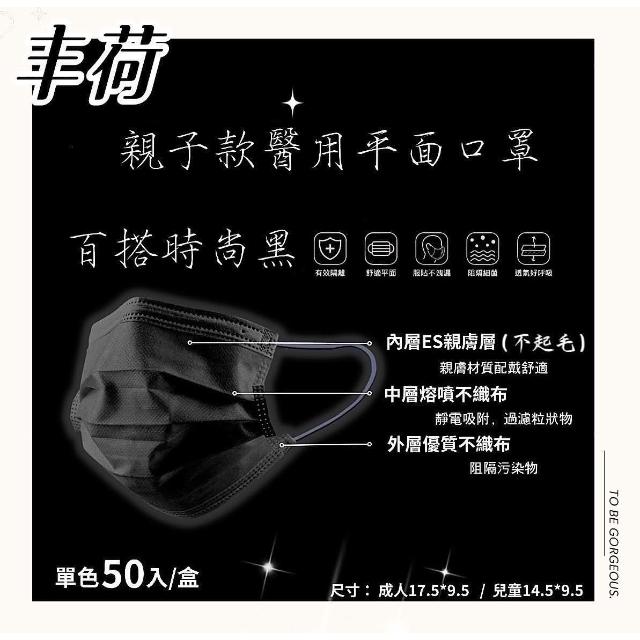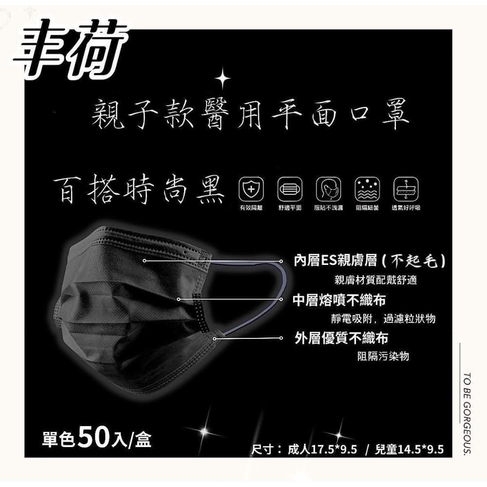 丰荷 成人 醫療口罩 醫用口罩 醫材字號 平面 50入/盒(素色 黑色 全黑口罩 時尚黑 台灣製造 現貨供應)