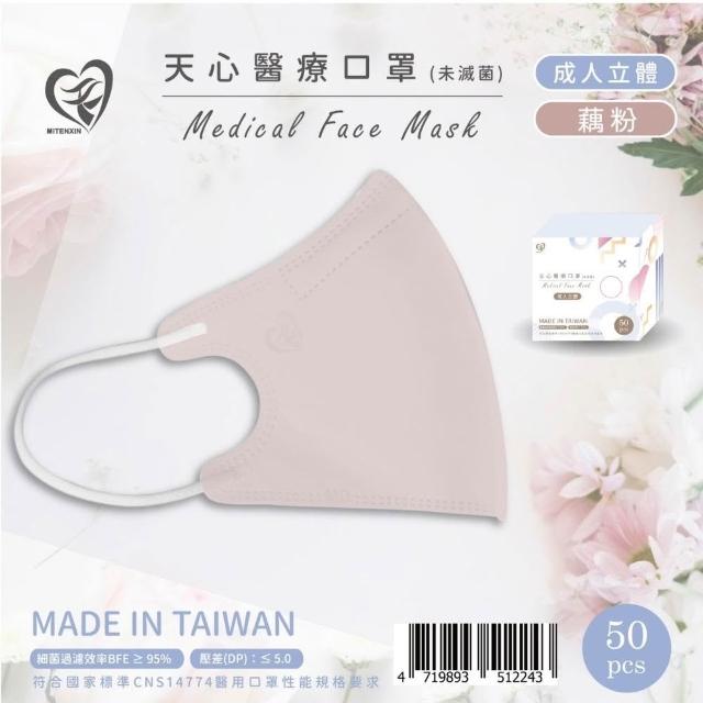 天心 成人立體口罩 50入 莫蘭迪色 3D醫療口罩 3D立體 醫療口罩 醫用口罩 不脫妝 台灣製 繁華中西藥局