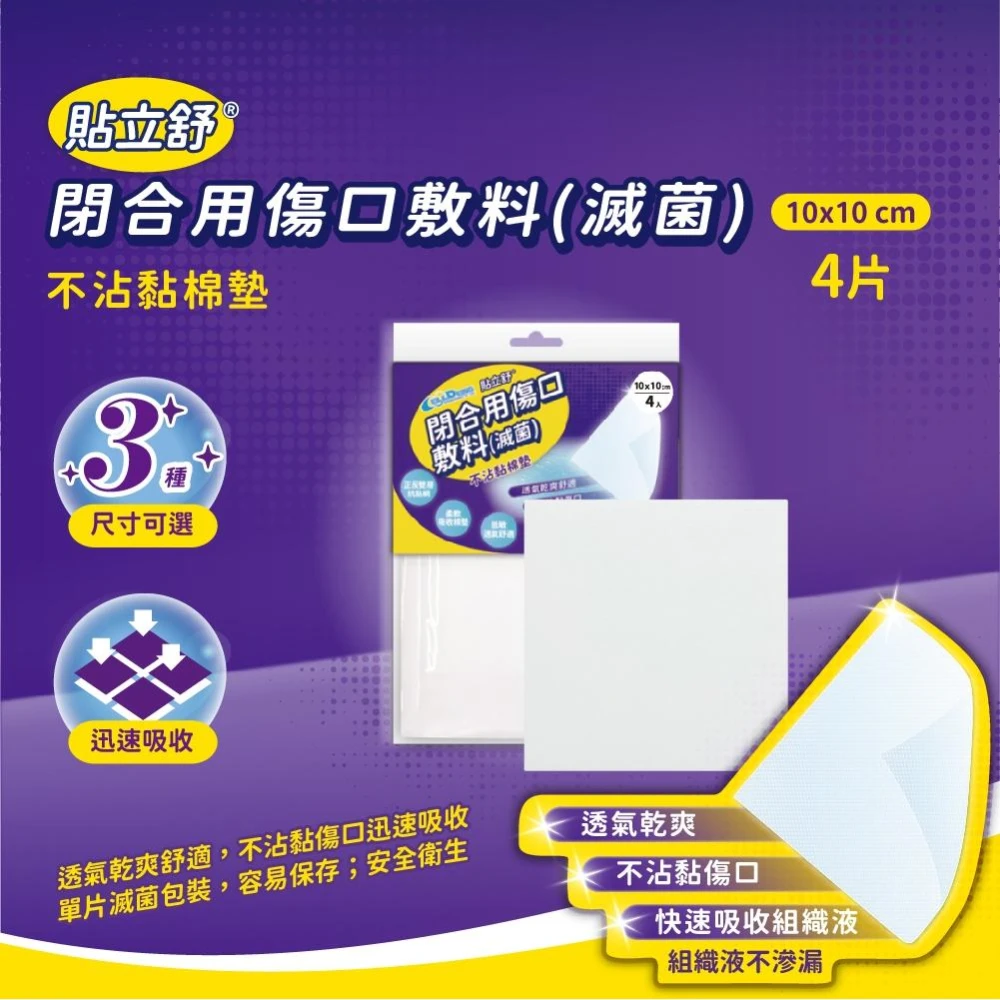 貼立舒 不沾黏 紗布棉墊 多種規格 滅菌包 單片裝 防沾黏棉墊不黏傷口 透氣紗布|繁華中西藥局|