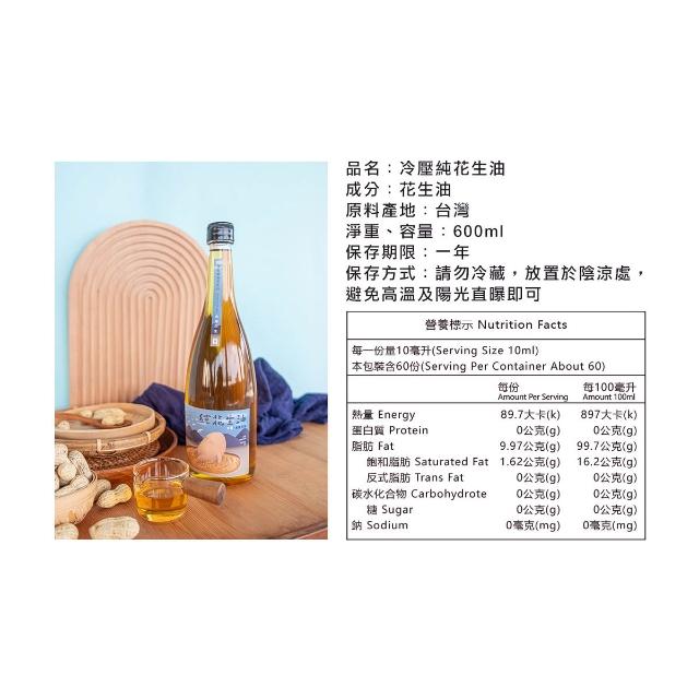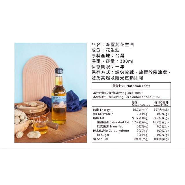 金弘麻油花生行 台灣冷壓純花生油 花生油 300ml 600ml 玻璃瓶 全素可食|繁華中西藥局|