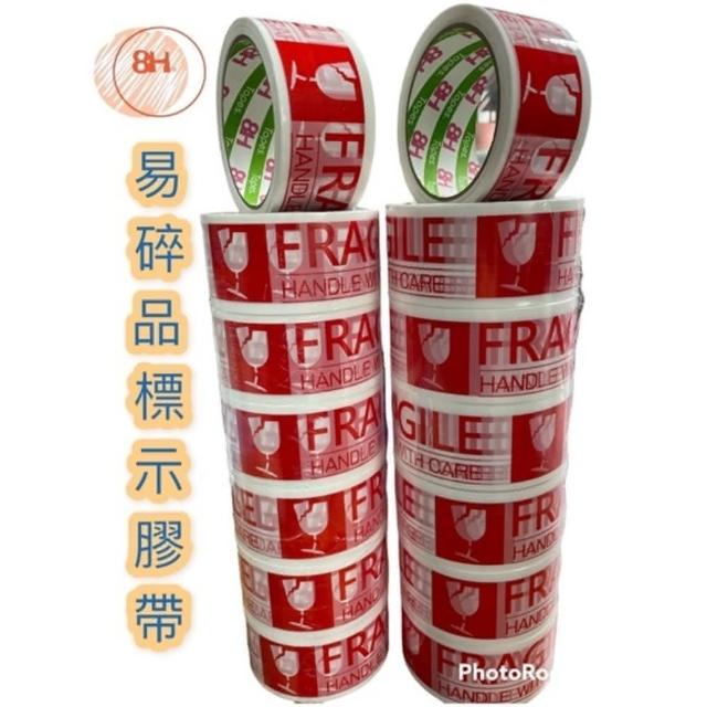8H專業包裝材料工廠易碎品標示膠帶 48mm*50(封箱膠帶 小心輕放 標示膠帶 警示語膠帶)