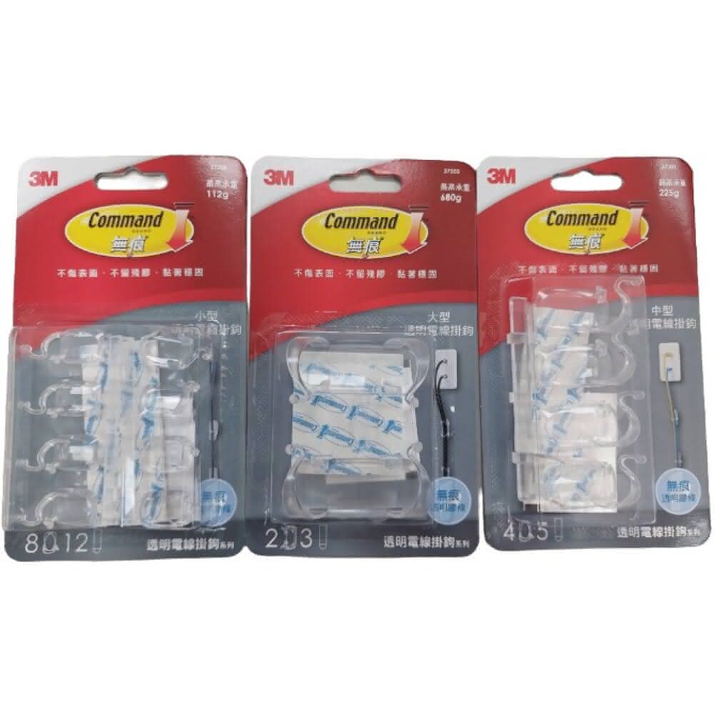 8H專業包裝材料工廠3M 無痕 透明電線掛鉤(大型掛勾37303 中型掛勾37301 小型掛勾37302 免鑽掛勾)