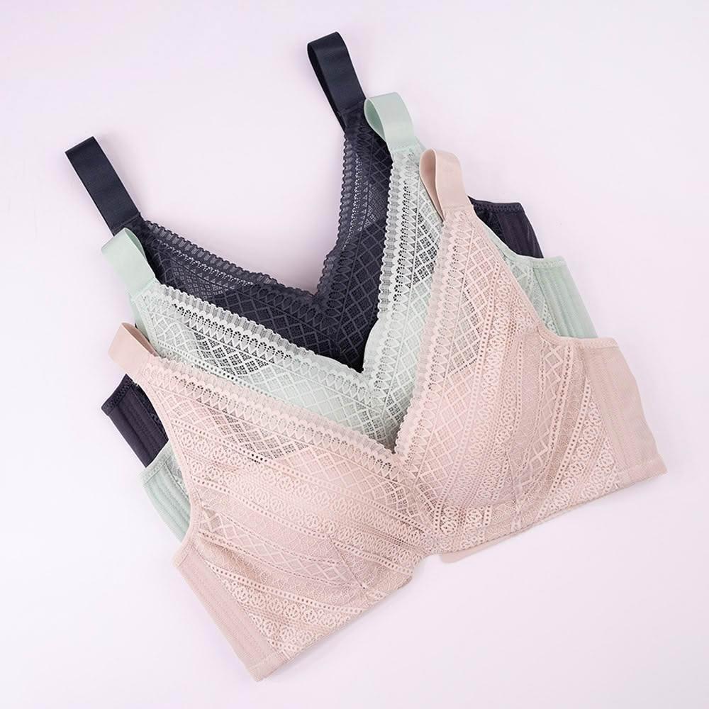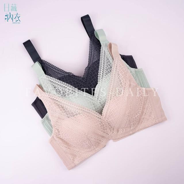 日藏內衣3件組- MIT輕風浪花 膠原蛋白 無鋼圈機能內衣(燕麥膚+果綠+深藍 三件組)-8026