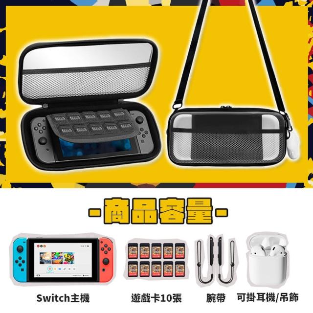 HerSwitch收納包 主機配件保護包 大容量 主機收納包 防摔保護包(10卡帶收納夾層/加大網袋/可調背帶)