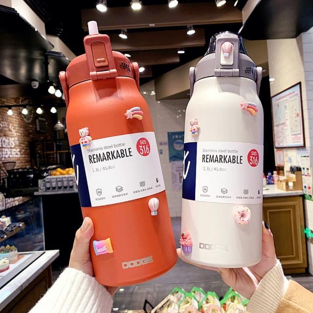 Her1700ML超大容量彈蓋保溫瓶 316不鏽鋼內膽(保溫咖啡壺 吸管杯口 防滑矽膠杯底 保溫杯)