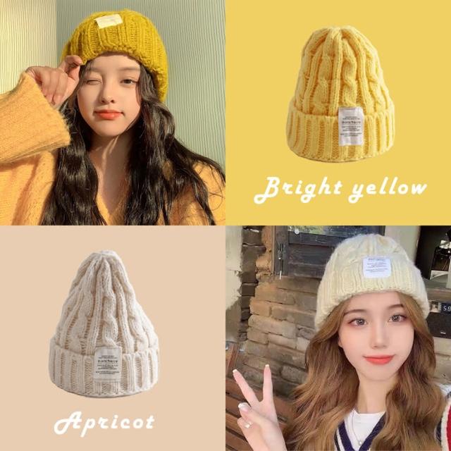 Her出遊穿搭 韓版麻花毛帽 百搭羊毛帽 針織帽 素色毛帽(厚實保暖 甜美麻花編織 山羊毛帽)