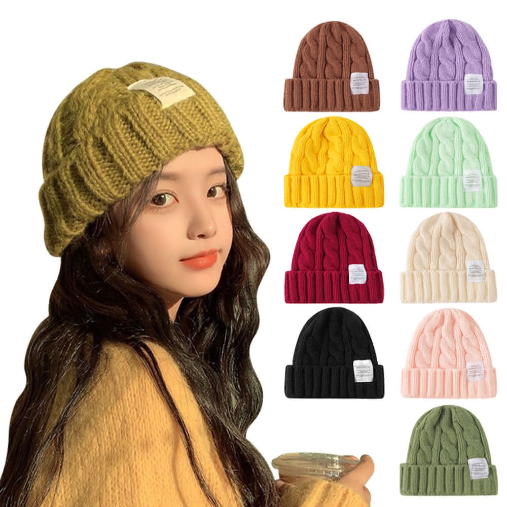Her出遊穿搭 韓版麻花毛帽 百搭羊毛帽 針織帽 素色毛帽(厚實保暖 甜美麻花編織 山羊毛帽)
