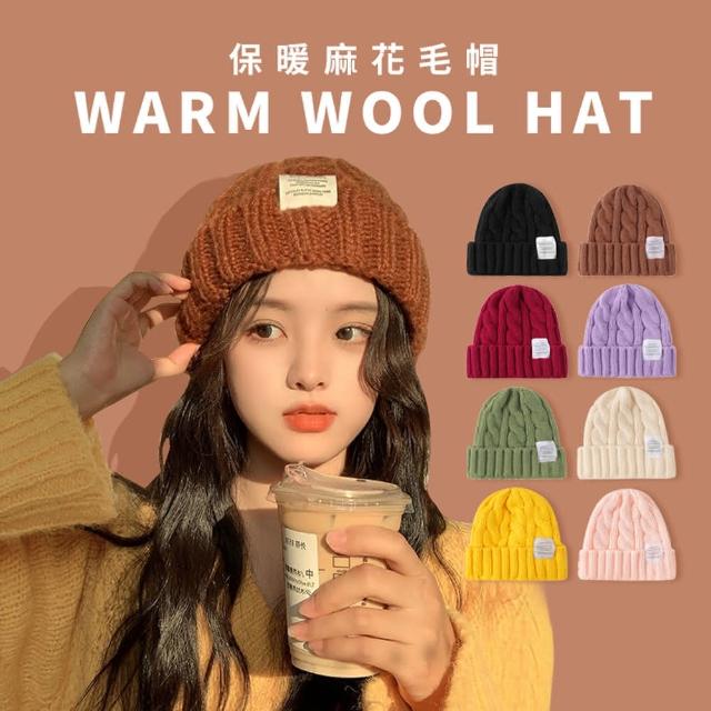 Her出遊穿搭 韓版麻花毛帽 百搭羊毛帽 針織帽 素色毛帽(厚實保暖 甜美麻花編織 山羊毛帽)