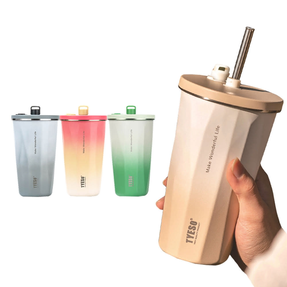 Her600ml漸層咖啡杯 尾牙春酒禮品 304不鏽鋼保溫杯 吸管保溫杯 真空保溫水壺 水杯 水瓶彈跳吸管 環保飲料隨行杯