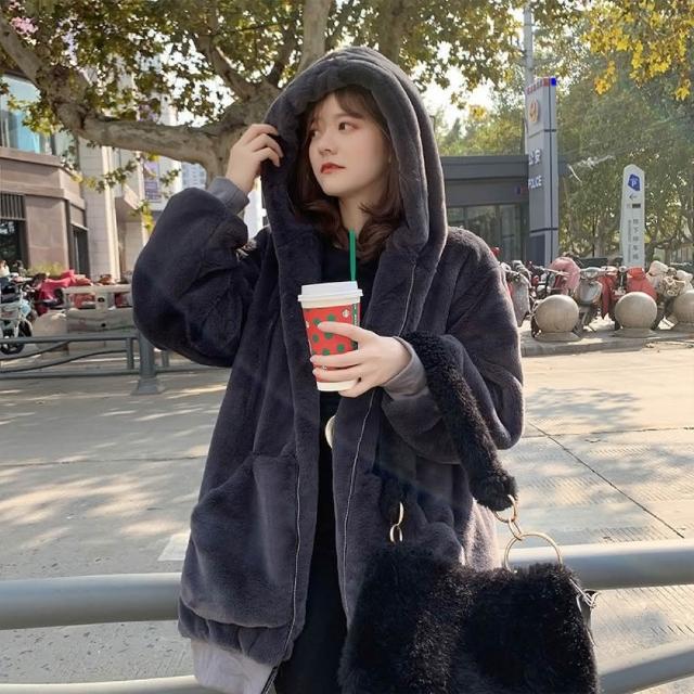 HELENA仿兔毛皮草外套(仿兔毛外套 熊熊外套 內裡鋪棉 連帽外套 A2178)