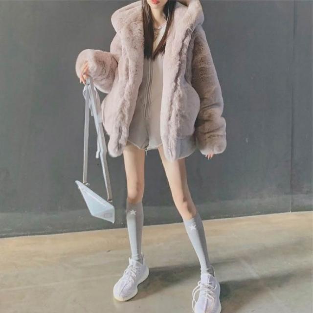 HELENA韓版毛毛絨皮草外套(仿兔毛外套 寬鬆 中長版 刷毛連帽外套 秋冬 A2154)