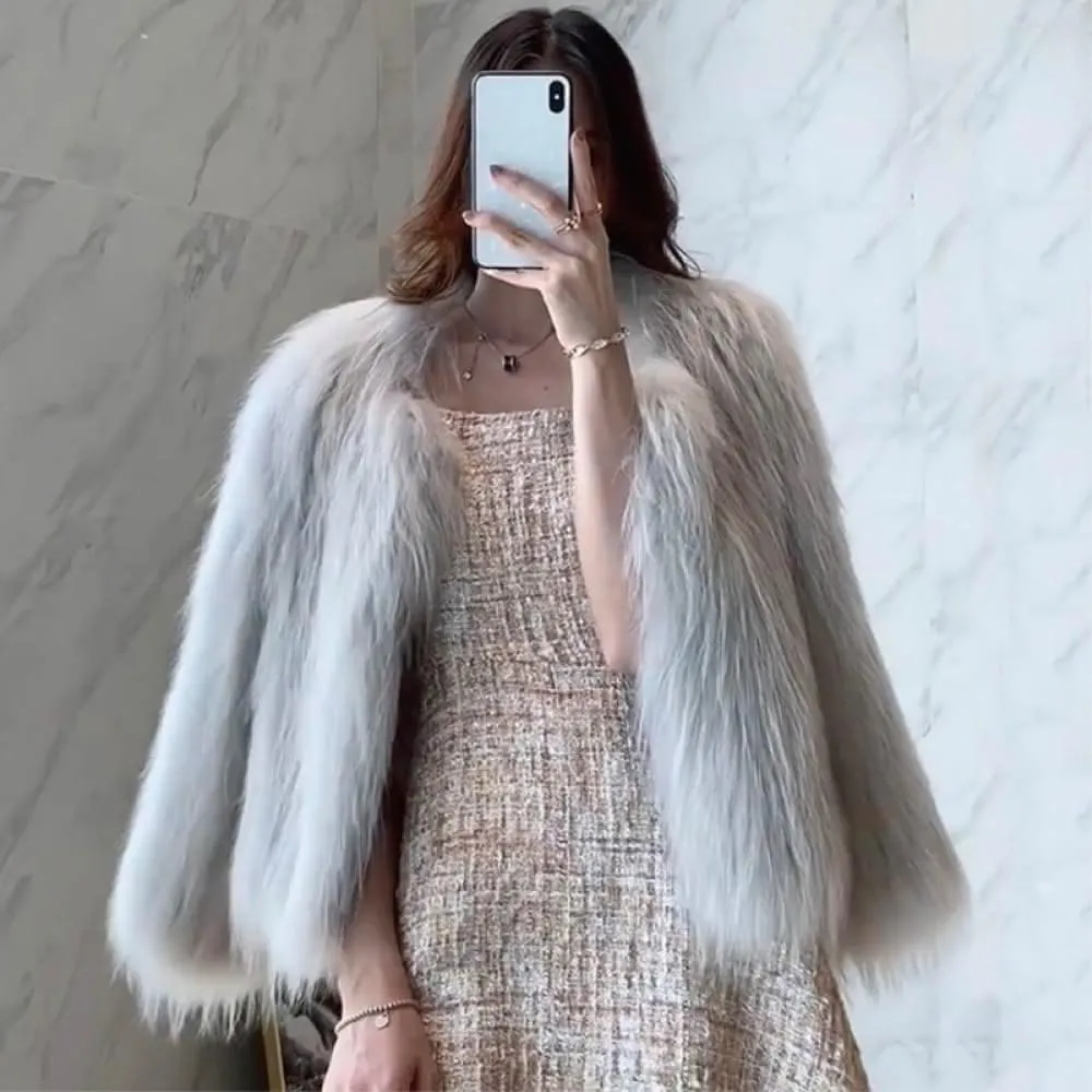 仿狐狸毛皮草外套