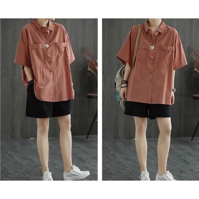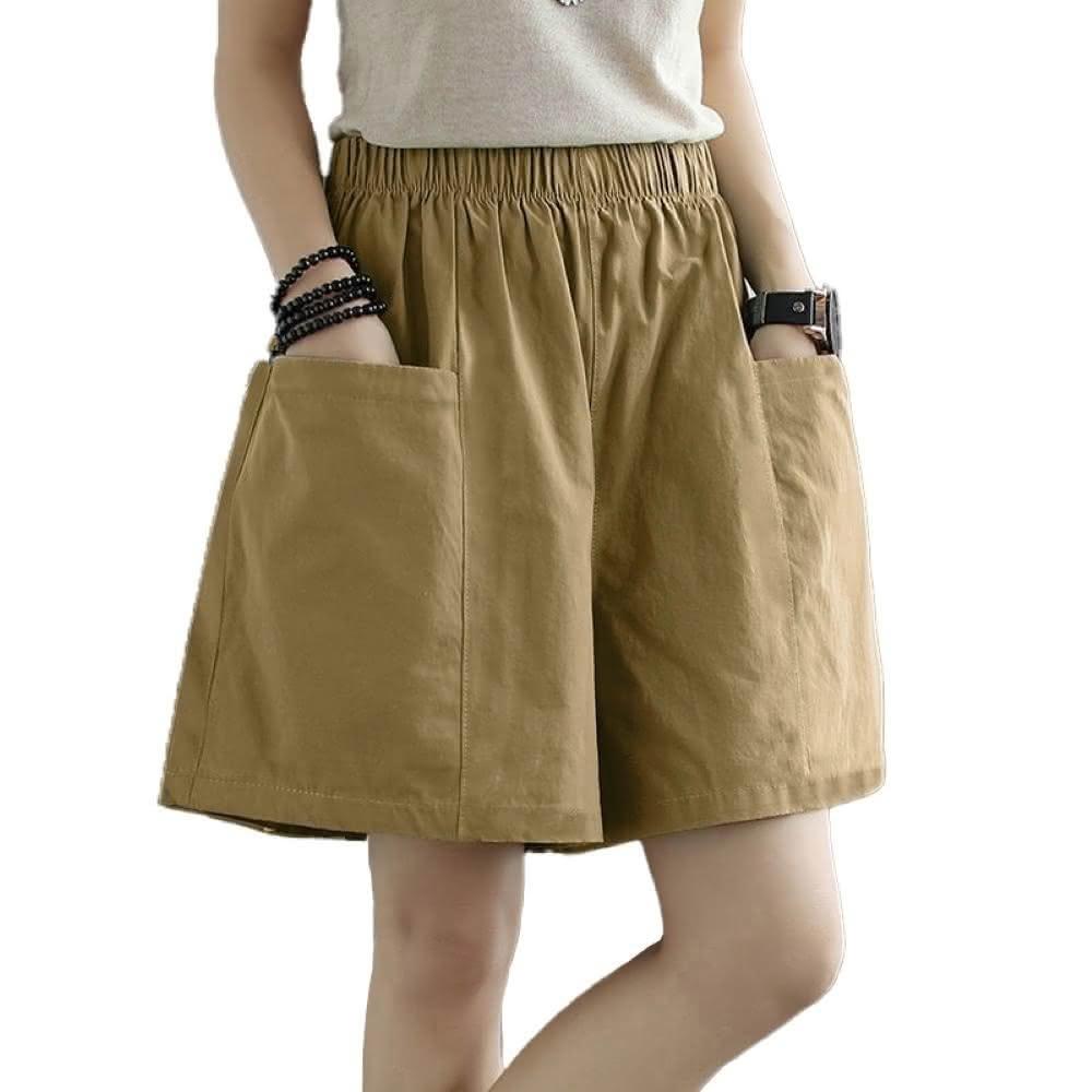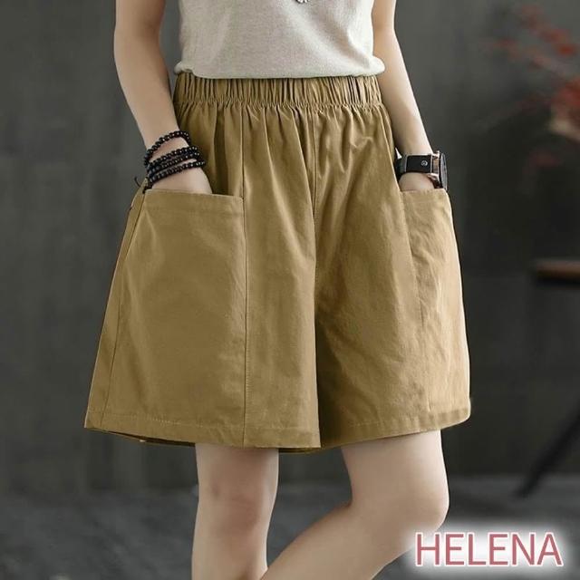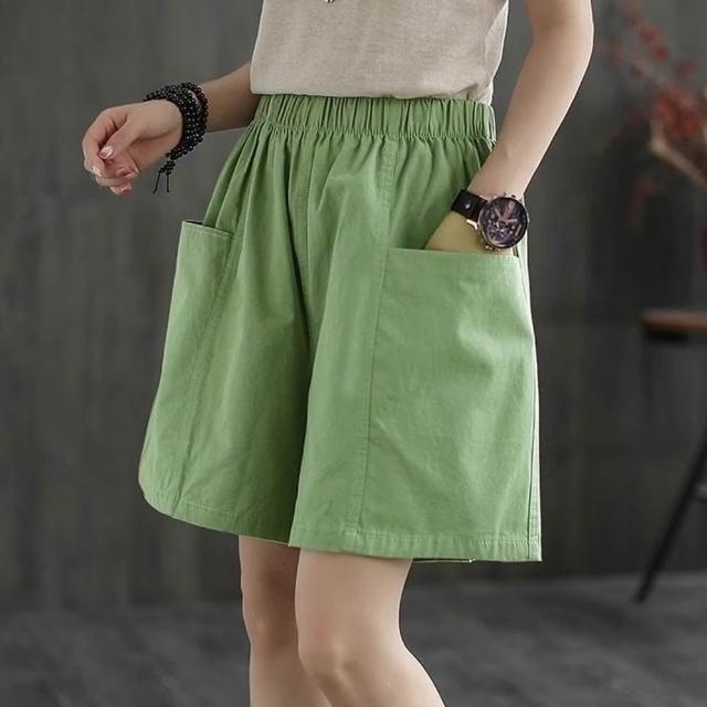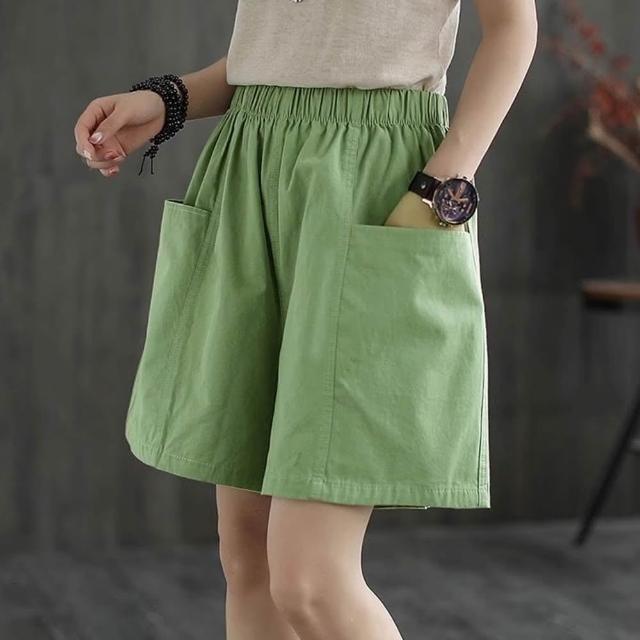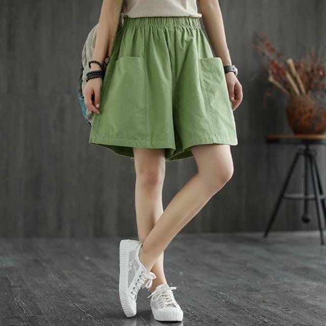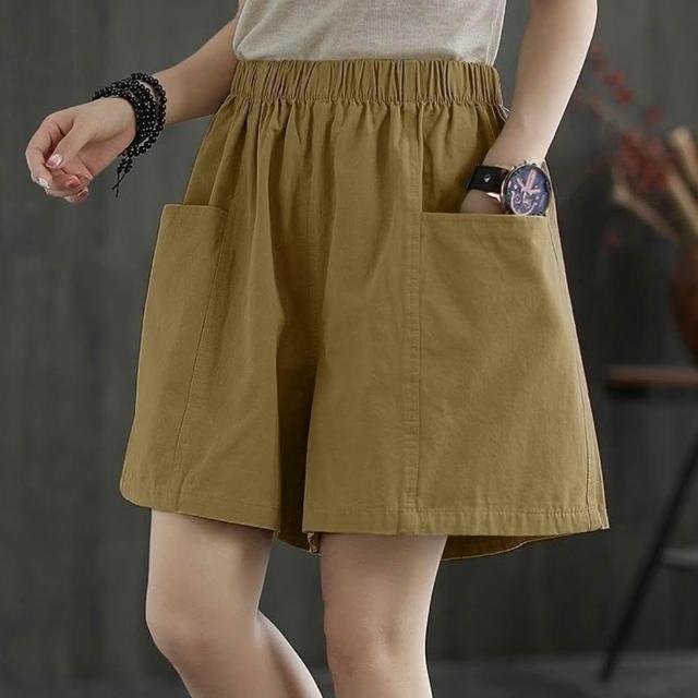 HELENA純棉短褲(五分短褲 寬褲 闊腿褲 藝文素色大尺碼口袋寬版高腰百搭顯瘦休閒褲 褲子女 C1106)
